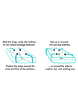 Make any bed your bondage playground with this easy to install kit. No bed posts required! Four soft cuffs are attached to 60 inch adjustable straps. Also includes a 60 inch adjustable connector strap for a secure fit. Portable and perfect for travel.