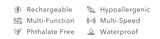 Special Features: Flexible, Hypoallergenic, Multi-Function, Multi-Speed, Non-Phallic, Phthalate Free, Rechargeable, Smooth Surface, Temperature Sensitive, Waterproof