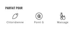 La première vous permettra de stimuler votre clitoris: à la façon d'un wand, la boule est à déposée sur votre clitoris qui bénéficiera des vibrations.