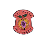 Affichez votre style audacieux et votre engagement en faveur du véganisme avec notre épinglette émaillée EAT PUSSY IT'S VEGAN. Cette épinglette unique met en scène une pêche coquine à l'image d'une vulve, ajoutant une touche ludique à votre look.