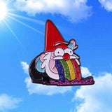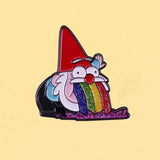 Découvrez notre épinglette émaillée "GNOME - GOÛTE L'ARC-EN-CIEL", une pièce artistique qui mêle humour et originalité. Cette épinglette présente un gnome en train de vomir un arc-en-ciel, ajoutant une touche de fantaisie et de dérision à votre style.