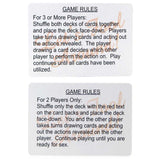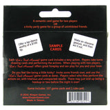 To play, you'll draw cards, deciding along the way which to keep and which to discard. The goal is to rack up one of each colour card- the resulting hand will spell out a bondage-bent scene that can be reacted with favourite bondage gear, or more readily available household items. Instructions and tips included.