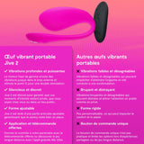 Jive 2 par We-Vibe™ est conçu pour être inséré dans le vagin et porté discrètement sous vos vêtements. Il est confortable à porter au repos, couché, debout ou en marchant et les vibrations puissantes peuvent être contrôlées par vous ou votre partenaire indépendamment de la distance avec l'application gratuite We-Connect™.