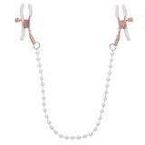 Take a tastefully tantalizing step into deeper sensations with the Peaches n’ CreaMe Pearl Nipple Clamps. Explore delicious sensitivity right where you want it most with dual adjustable clamps in stunning rose gold with pearl accents. White rubberized tips add a playful pop of color to your play and keep the clamps from slipping as you tease and pull your lovers chain, bringing intense feelings to their body.