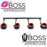Cet ensemble est conçu pour réaliser vos fantasmes les plus coquins et améliorer votre expérience de bondage. Imaginez vos chevilles menottées aux extrémités de la barre d'écartement, laissant vos zones les plus succulentes exhibées et à disposition pour les plaisirs sombres de votre amant, ou vos bras écartés et immobilisés pendant qu'il taquine et tourmente chaque centimètre de votre corps. Les quatre points d'attache de la barre d’écartement et les clips pivotants de chaque bracelet permettent même le jeu avec plusieurs partenaires. Combinez l'ensemble avec d'autres produits de la collection Saffron pour encore plus de plaisirs interdits!