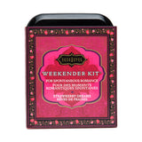 The all new Weekender Kit is here! Be ready for spontaneous romance with these petite sensual Kama Sutra luxuries. Perfect portions fit comfortably in a pocket, luggage, bag or purse for a weekend away - now available in SIX different flavors!