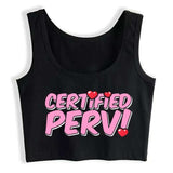 Message provocateur : Le message audacieux "CERTIFIED PERV!" est affiché de manière stylisée, permettant à ceux qui le portent de faire une déclaration de style unique.